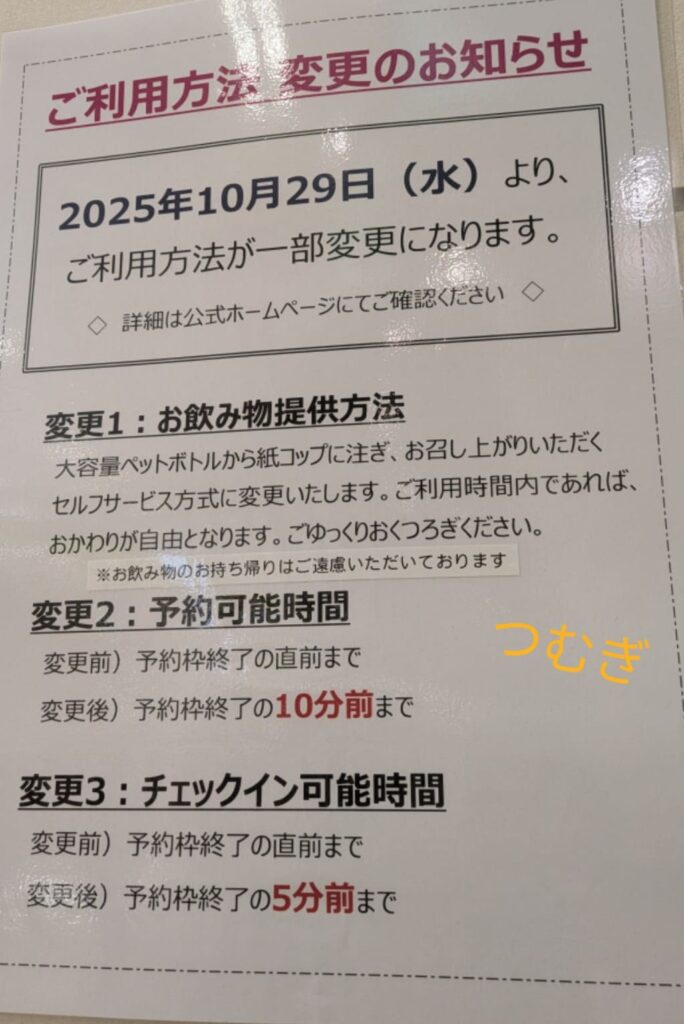 今回の変更は、時間内なら何度でも飲み物をおかわりできる・自分のペースでゆっくりできるという点は良いですね。