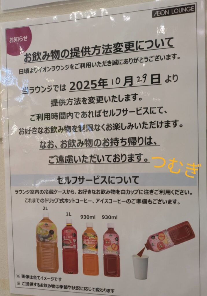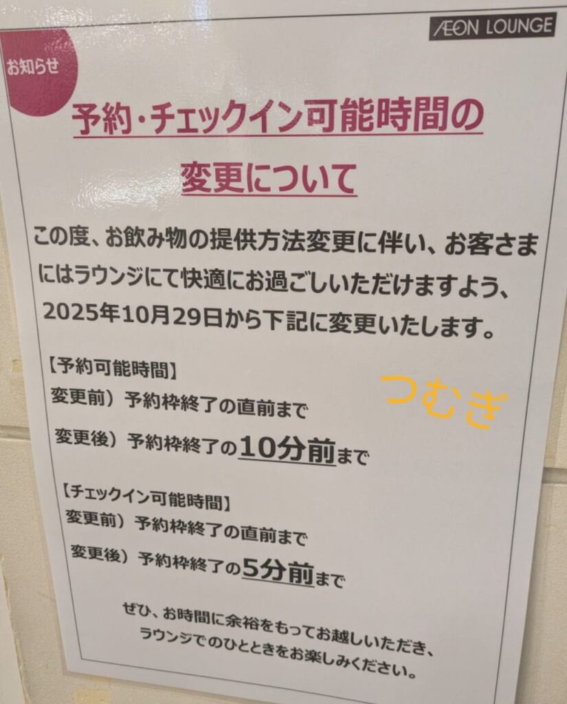 そんなイオンラウンジですが、2025年10月29日(水)から利用方法が一部変更になるようです。